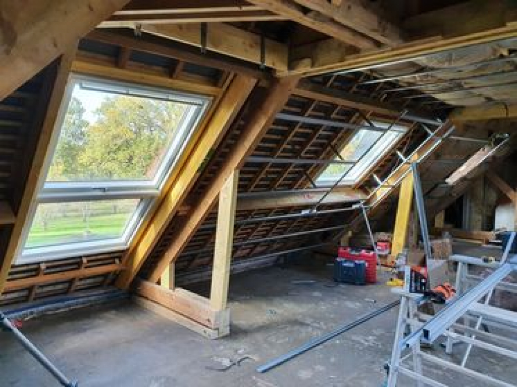 Dans le cadre de l’aménagement des combles d’une maison située à Betton (35830), l’entreprise SARL FALHER est intervenue pour réaliser une transformation complète et apporter davantage de lumière naturelle à l’espace. Ce chantier met en valeur le savoir-faire de l’entreprise dans la création de structures bois et l'installation de fenêtres de toit.