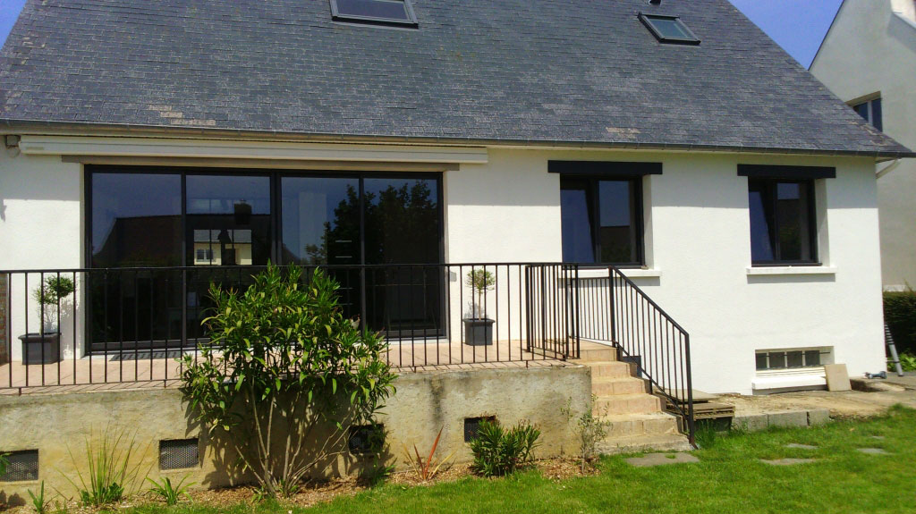 Nos clients Monsieur & Madame C., situés à Montgermont à proximité de Rennes, avaient un projet concret, changement des fenêtres PVC pour de l'aluminium couleur Noir 2100 Sablé, création d'une baie de 4,40M (réalisation de la maçonnerie par une entreprise partenaire).