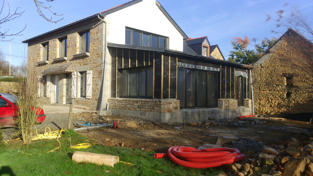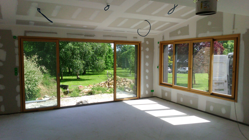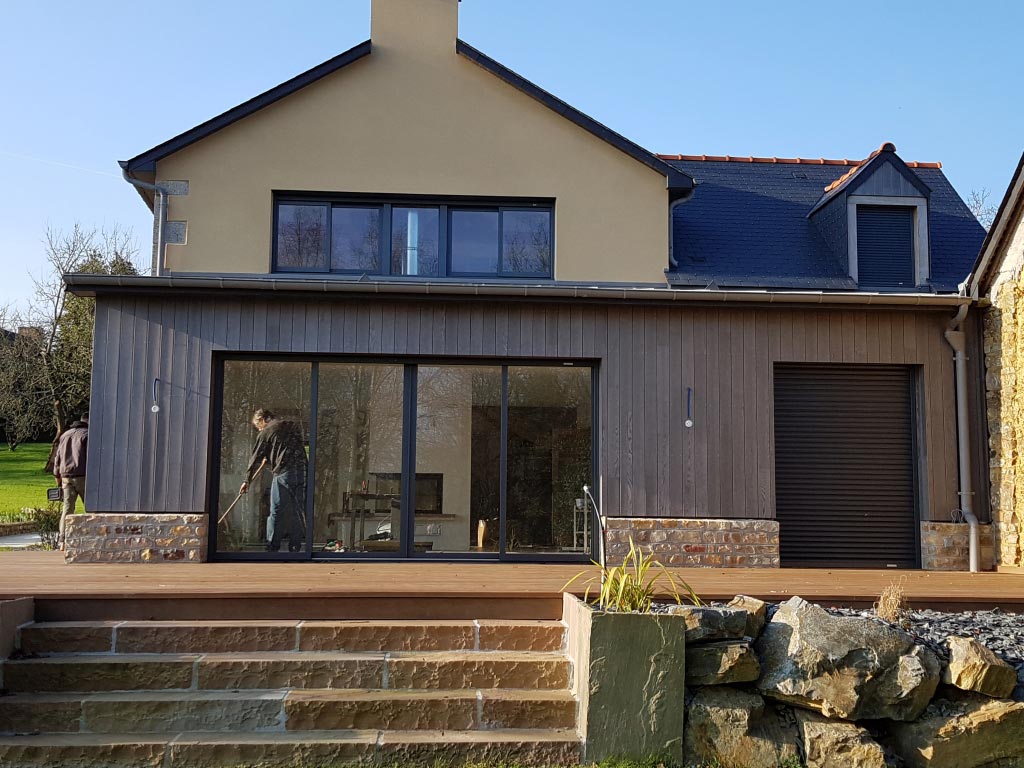 Rénovation et extension en bois dans une habitation avec pose de toutes les ouvertures