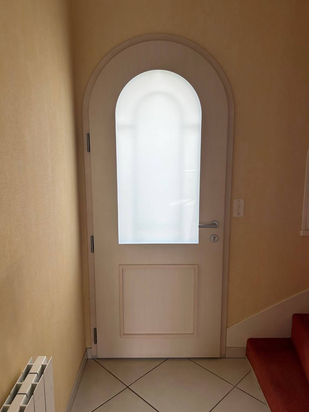Sur la commune de Cesson Sévigné à proximité de Rennes en Ille-et-Vilaine (35), remplacement d'une porte d'entrée en bois par une porte d'entrée mixte bois/aluminium.
